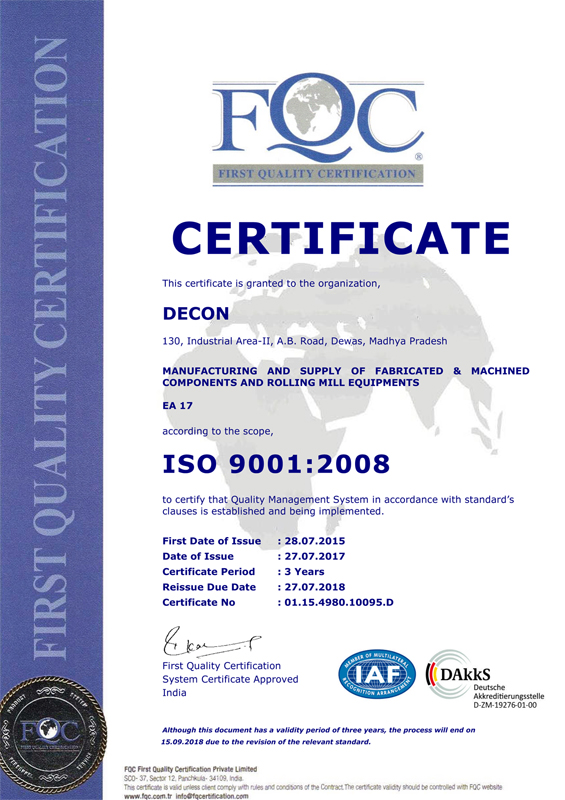 “Decon” was established in 2011 by a highly experienced engineer after working in various Ferrous and Non Ferrous Metal Rolling industries for more than 15 years. Under his valuable guidance and leadership, the company is constantly progressing right from its inception.